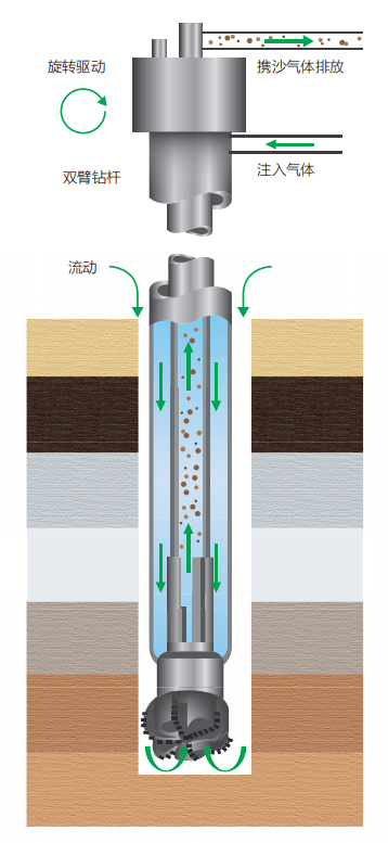 ·在雙壁鉆桿基礎上也發展了新的鉆井技術,以RDM(Reel Well Drilling Method)鉆井技術和RCCD(Reverse Circulation Centre Discharge)為典型代表。