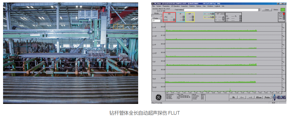 (d)管體100%全長漏磁探傷,100%FLUT(縱向、橫向、斜向超聲檢測+超聲測厚)+100%管端MPI(或UT),鉆桿接頭100%UT+100%MPI,焊縫100%UT+100%MPI